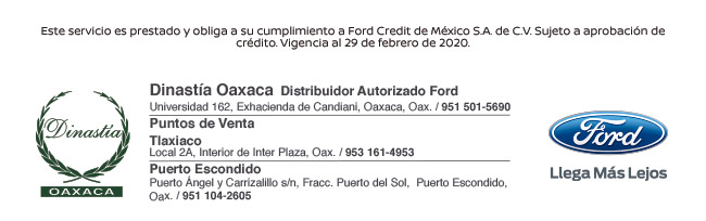 En Dinastía Automotriz Oaxaca S.A. de C.V. con domicilio en: Av. Universidad No.162, Ex hacienda de Candiani, Oaxaca de Juárez. C.P. 68133, la información de nuestros clientes es tratada de forma estrictamente confidencial por lo que al contar con sus datos personales, consiente su tratamiento con las siguientes finalidades: (i) Proveerle un bien y/o servicio, (ii) dar cumplimiento a requerimientos legales, (iii) realizar actividades de mercadeo y promoción en general, (iv) ofrecerle nuestros productos, servicios e información de nuestros socios de negocios, (v) análisis estadísticos y de mercado y (vi) mantener actualizados nuestros registros. Para conocer el texto completo del aviso de privacidad para clientes y clientes potenciales de Dinastía Oaxaca favor de consultar aquí. |