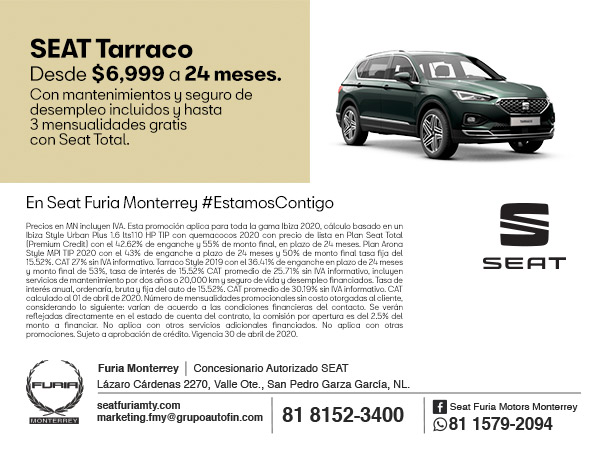 En Furia Motors Monterrey, S.A. de C.V. con domicilio en Av. Lázaro Cárdenas 2270, Col. Valle Oriente, San Pedro Garza García, Nuevo León, C.P. 66269, la información de nuestros clientes y clientes potenciales es tratada de forma estrictamente confidencial, por lo que al contar con sus datos personales consiente su tratamiento con las finalidades de realizar trámites, procedimientos y gestiones para la adquisición de bienes, productos y servicios y realizar actividades de mercadotecnia, publicidad y prospección comercial relacionadas y diversas a los bienes, productos y servicios de Furia Monterrey. Para conocer el texto completo del Aviso de Privacidad, favor de consultar aquí. Si no desea recibir nuestros correos, delos de baja aquí. |