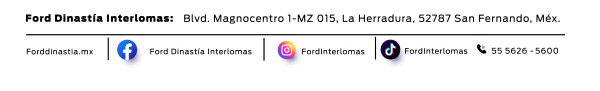 En Dinastía Automotriz México S.A. de C.V. con domicilio en: Av. Magnocentro No. 1 Col. San Fernando la Herradura Huixquilucan, Estado de México. C.P. 52760, la información de nuestros clientes es tratada de forma estrictamente confidencial por lo que al contar con sus datos personales, consiente su tratamiento con las siguientes finalidades: (i) Proveerle un bien y/o servicio, (ii) dar cumplimiento a requerimientos legales, (iii) realizar actividades de mercadeo y promoción en general, (iv) ofrecerle nuestros productos, servicios e información de nuestros socios de negocios, (v) análisis estadísticos y de mercado y (vi) mantener actualizados nuestros registros. Para conocer el texto completo del aviso de privacidad para clientes y clientes potenciales de Dinastía México favor de consultar aquí. Si no desea recibir nuestros correos, delos de baja aquí.